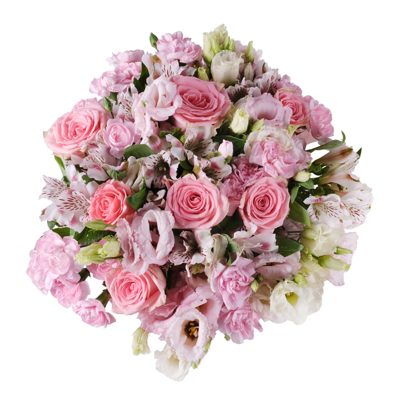 W pastelowej tonacji bukiet „Siła kobiecości” łączy lekkość i elegancję. Goździki, róże, eustomy i alstromerie tworzą wyjątkową całość. Można dołączyć bilecik.